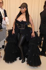 we have looks from nicki who (has recently discussed having anxiety about the expectations she had regarding her looks when she first entered the music industry), that modernize the puffy dress, by adding feathers and giving an opening that shows leather pants.then the looks of singer chloe bailey who did a chic sophisticated version of the strapless corset look with an a -line dress bottom and thigh high split.